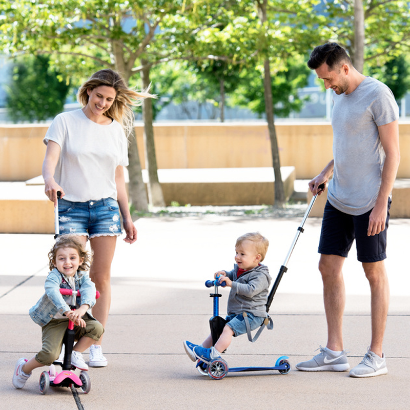 Met het lage stuurzitje voor de Mini Micro step kunnen kindjes vanaf 1 jaar al beginnen met steppen. Je kindje stuurt door naar links of rechts te leunen, dit bevordert coordinatie en evenwichtsgevoel. Met de duwstang kun je je kind gemakkelijk voortbewegen als hij of zij moe is, of wat hulp nodig heeft.